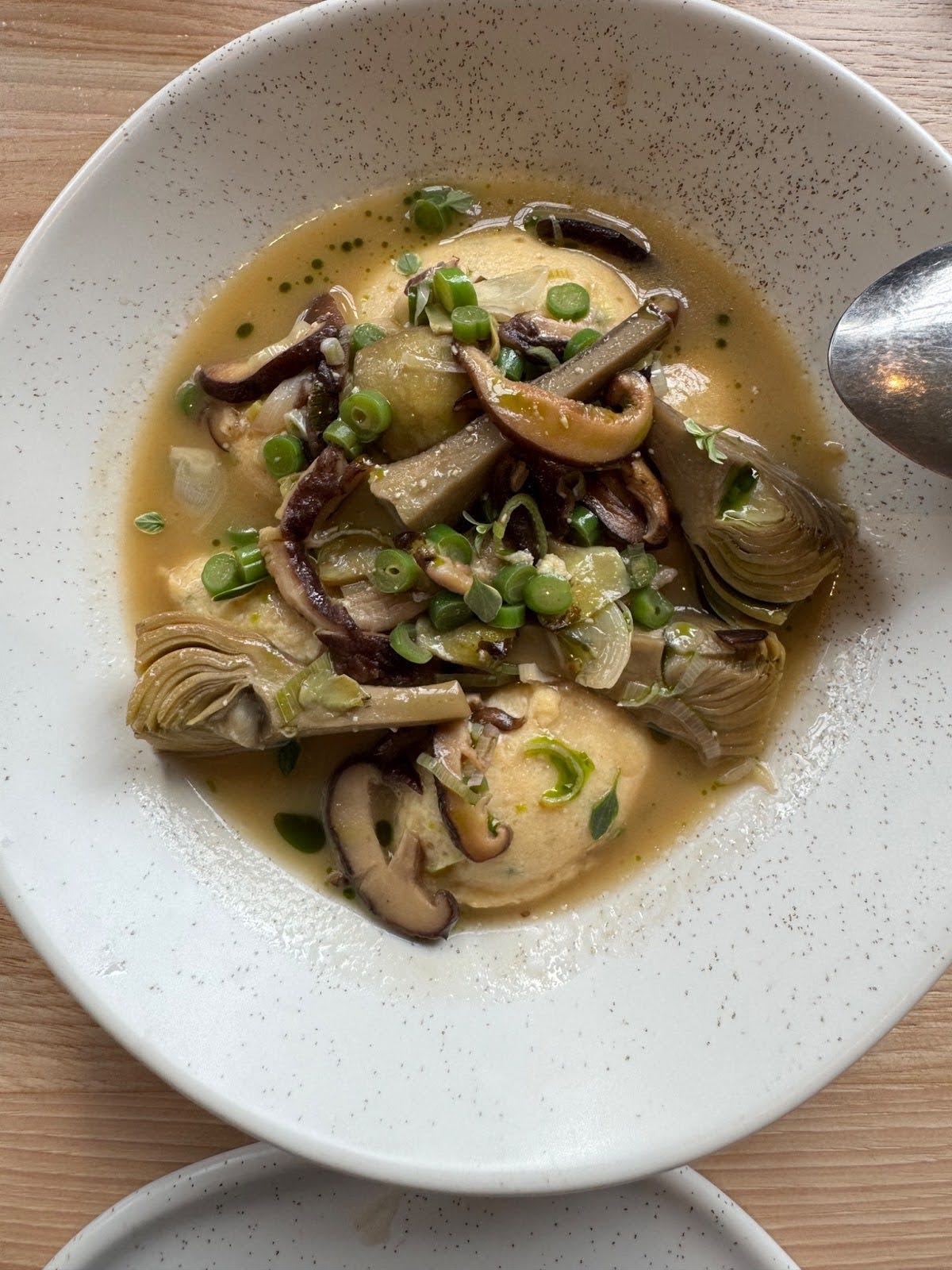 Firstborn thrilled me last week. The fried chicken and cabbage have been well discussed. I’ll add that the tofu dumplings are a thing — Anthony is riffing on gnudi in a way that’s true to his menu, and it’s a beautiful success. Floor staff is attentive, non-intrusive, hospitable, and ready with details about every dish and cocktail. Our server paired our fried chicken with the Lambrusco by the glass — perfection. Kenzo Han’s cocktails are some of the best in recent memory. I love the Spring Martini with celery oil and the low-ABV Shochu Bamboo with manzanilla sherry and yellow Chartreuse. I told half a dozen friends to go before I left the table.